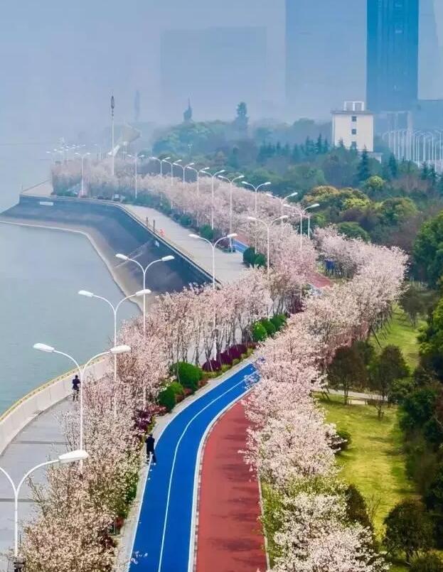 杭州濱江有一條長達15.5 km的沿江“最美跑道”,