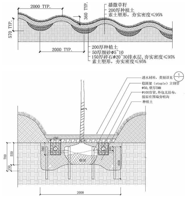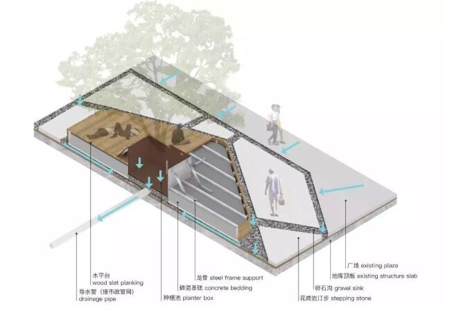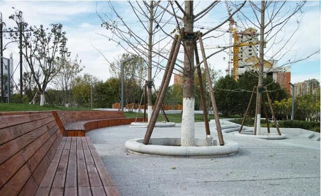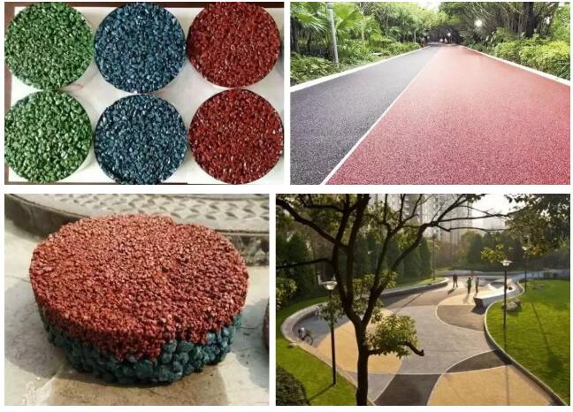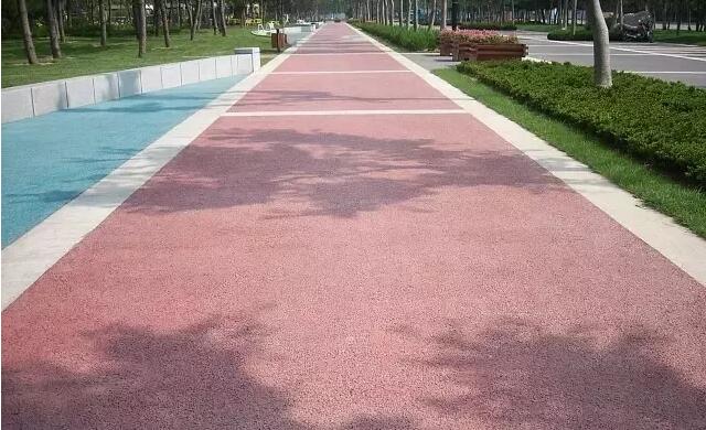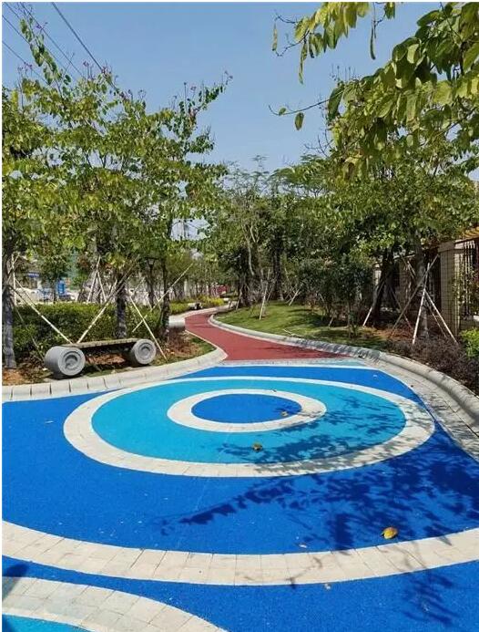 彩石透水材料及透水塑膠的透水系數(shù)極高,往往是透水瀝青混合料及透水水泥混凝土的數(shù)十倍,但也容易出現(xiàn)脫膠、破損等現(xiàn)象,耐磨性較差,因此常將它們用于方便維護(hù)的特殊人行鋪裝,如入口節(jié)點、建筑附屬場地、兒童活動場地、靠近建筑或出入口的主要園路等。