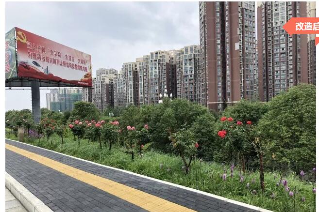 道路綠化進(jìn)行改造提升,補(bǔ)種行道樹(shù)、修剪綠化帶,利用現(xiàn)有地勢(shì),打造桂花游園、臘梅游園。