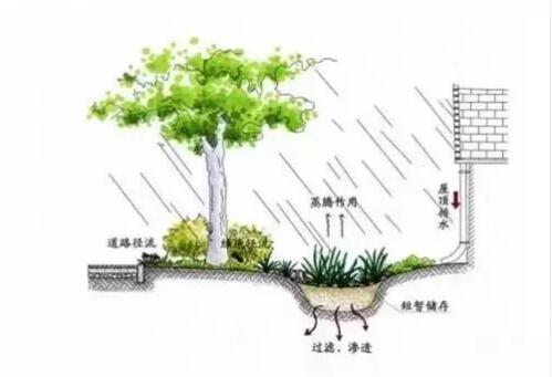 雨水花園也被稱為生物滯留區(qū)域,是指在園林綠地中種有樹木或灌木的低洼區(qū)域,由樹皮或地被植物作為覆蓋。它通過將雨水滯留下滲來補(bǔ)充地下水并降低暴雨地表徑流的洪峰,還可通過吸附、降解、離子交換和揮發(fā)等過程減少污染。