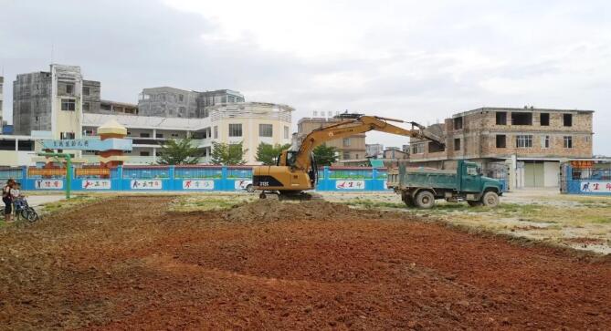 7月16日早上,一臺(tái)挖掘機(jī)和1輛卡車緩緩開進(jìn)文地中心校外操場(chǎng),引來眾人圍觀。原來,這是該校硬化足球場(chǎng)的工程開始了。