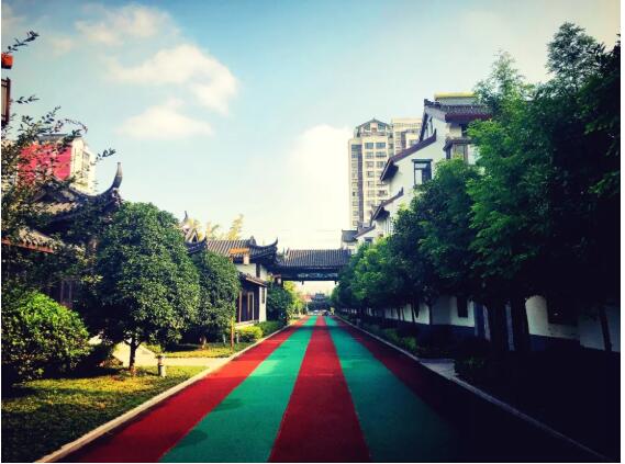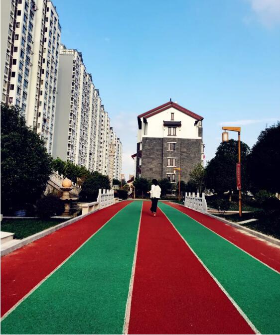 吸引著許多健身愛好者的是這彩色的塑膠跑道。跑道一圈的長度是四百八十米左右(外圈的距離),步行大約是八百步,一圈走下來需要五六分鐘時(shí)間。