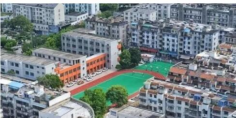 浙江嘉興市輔成小學低段部,整修一新的塑膠操場在老城區(qū)中格外引人注目。