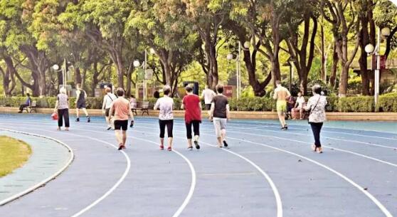 每天傍晚,都有不少市民到中山公園藍跑道鍛煉、休閑