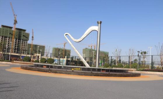 豎琴雕塑音樂廣場的建設(shè)及鋪裝的細(xì)節(jié)處理,彰顯了游園的品位與特色。