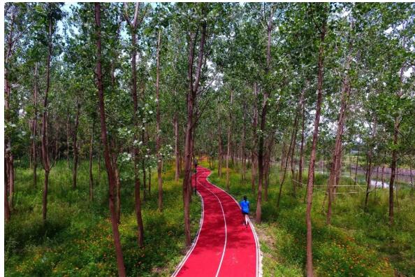 千畝港健身步道配套有千畝港公園,沿著河道兩邊建設(shè)5公里步行道,公園里多為喬木、灌木、草等植物的有機(jī)結(jié)合方式,形成錯落有致、四季分明的景觀效果。