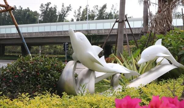 此外,施工方還在道路兩側(cè)新增21件大型雕塑作品,模型取材白鷺、白海豚等元素。項(xiàng)目還通過人行道改鋪透水磚、新建旱溪等,讓道路具備收集、儲蓄雨水的“海綿”功能。