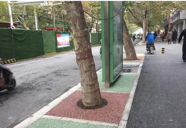 “綠化樹(shù)周圍硬化了,色彩斑斕,非常好看,但綠化樹(shù)下也鋪上了一圈瀝青,會(huì)不會(huì)影響大樹(shù)吸收水分?“王女士說(shuō),她擔(dān)心樹(shù)根周圍被鋪設(shè)的是一圈瀝青,沒(méi)有裸露泥土,綠化樹(shù)無(wú)法吸收水分從而枯死,或者受瀝青影響,影響綠化樹(shù)的健康。