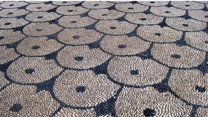 鵝卵石是最常見的就地取材原料,簡單的鵝卵石可以被工匠們的巧手搭配出美觀耐用的路面效果。