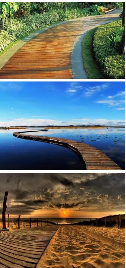 木棧道是當下景區(qū)和公園非常流行和百搭的鋪裝方式。木棧道是看上去最生態(tài)的道路形式,但因木質(zhì)的耐久性、普遍壽命有限,目前也出現(xiàn)了很多仿木材質(zhì)的聚合材料,但造價也不低。