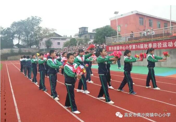 在初冬的綿綿細(xì)雨中,在同學(xué)們的翹首期盼中,11月21日上午8:00,黃沙崗鎮(zhèn)中心小學(xué)第十六屆田徑運動會順利開幕了。伴著雄壯的國歌聲,踏著整齊的步伐,國旗隊向我們走來了。