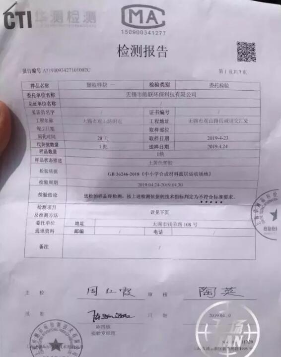 無錫一小區(qū)3000平米塑膠跑道味道刺鼻,甲醛超標(biāo)數(shù)倍