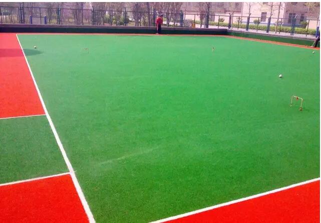 綠色草皮鋪設(shè)完成后,切開草皮留出位置鑲嵌2cm寬的白線,將兩邊的草并齊,粘接在膠帶上,重物壓平接縫,然后整合接縫部位,將草皮粘合。在整個接縫工程完工以后再進(jìn)行操場的畫線工程,嚴(yán)格按照設(shè)計(jì)圖紙和甲方所要求的標(biāo)準(zhǔn)進(jìn)行畫線工程,畫線在進(jìn)行切割時要注意切割草的寬度和白色草寬度間縫一般情況下不超過3mm,還要注意切割的直線性。在粘合白線時,一定要將膠水均勻涂刷,使其粘貼穩(wěn)合。