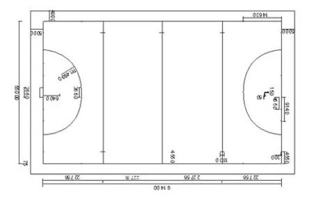 比賽場地邊線和端線外應分別空出4.0m和5.0m的緩沖區(qū)域。相鄰比賽場地間還應設4m寬的場外工作區(qū)
