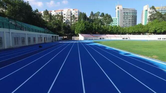 該塑膠跑道是由專為運動場設(shè)計的聚氨酯黏合劑按控制比例混合特殊膠粒后,經(jīng)由專業(yè)施工機械控制厚度鋪設(shè)的。并在其表面以EPDM膠粒與同色聚氨酯面漆混合用專業(yè)的噴涂機噴灑覆蓋在橡膠基墊上,形成特殊的有組織的紋路,賦予面層正確的附著摩擦力和抗滑阻力。