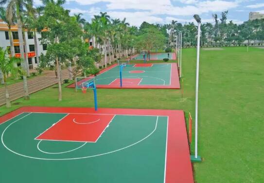 面漆層施工:硅PU球場(chǎng)面漆為雙組份材料,由A組份固化劑和B組份色漆組成,將兩種材料混合后充分?jǐn)嚢杈鶆?,然后加入專用防滑?數(shù)量為混合面漆總量的0.8%),將材料充分?jǐn)嚢杈鶆蚝笥脻L筒遍涂施工。