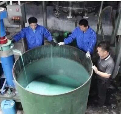 硅PU材料中的清漆中酯類(lèi)溶劑遇水后與鐵質(zhì)的容器發(fā)生反應(yīng),導(dǎo)致材料顏色變綠、變黑,沒(méi)有一點(diǎn)光澤。