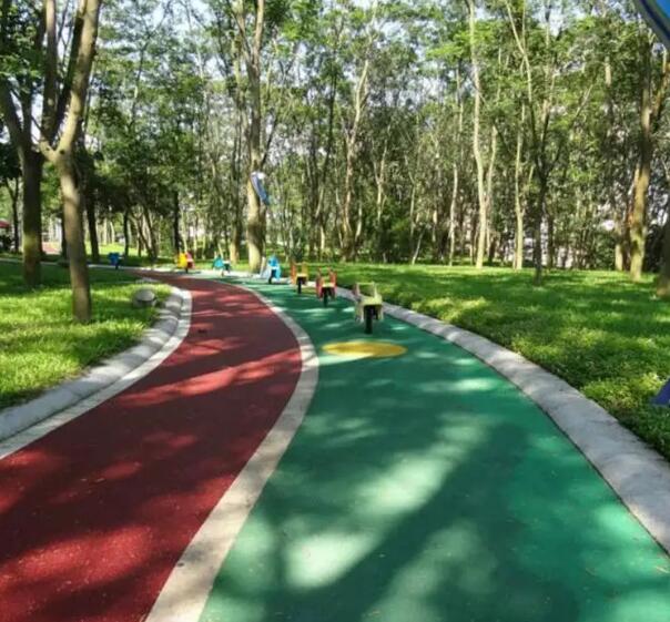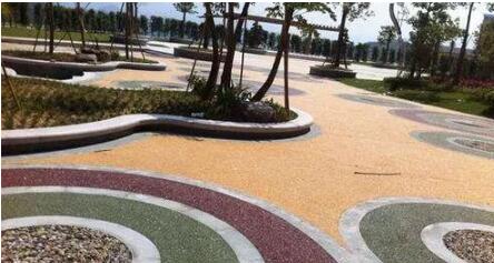 膠粘石具有生態(tài)、透水、透氣及較好的防滑功能面且環(huán)保無毒、無輻射、無環(huán)境污染、是一種會呼吸的生態(tài)地面。