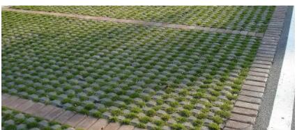 適用范圍:有透水要求的停車場、公園步道等場合。當(dāng)路面荷載較高時(shí),可選用普通混凝土成型的四角互鎖開孔植草磚。