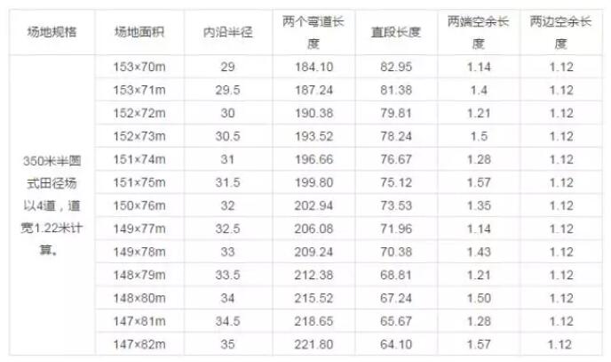 350m非標(biāo)準(zhǔn)半圓式田徑場(chǎng)簡(jiǎn)要參數(shù)表