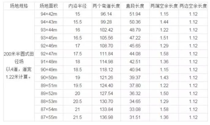 200m非標(biāo)準(zhǔn)半圓式田徑場(chǎng)簡(jiǎn)要參數(shù)表