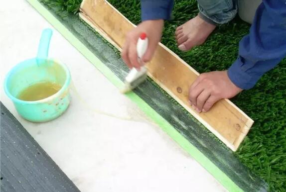 用專用工具按規(guī)格對草坪進行切邊,對縫,并用專用接縫膠及接縫帶粘接人工草坪。