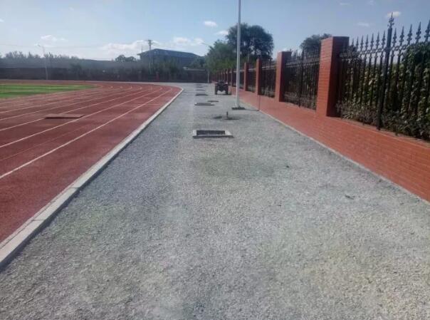 本道工序是滲水型塑膠跑道最主要的兩道工序之一,一般有人工攤鋪和機械攤鋪兩種類型,我公司全部采用機械攤鋪,故在此只對機械攤鋪工藝作介紹。