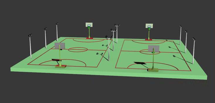 二、傳統(tǒng)的球場(chǎng)一般都是用金鹵燈,隨著LED燈具的日益發(fā)展,LED照明燈正在迅速進(jìn)入人們的視線,LED作為節(jié)能照明設(shè)備,越來(lái)越受到人們的關(guān)注,而對(duì)于室內(nèi)球場(chǎng)而言,LED燈具亦受到廣大的關(guān)注,本方案為L(zhǎng)ED燈具在室外標(biāo)準(zhǔn)籃球場(chǎng)的應(yīng)用。