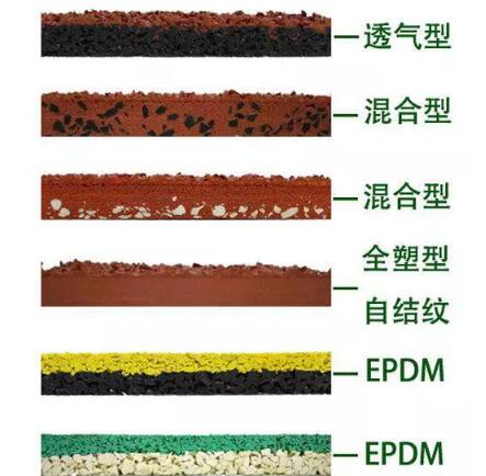 塑膠跑道根據(jù)用料和工藝有不同的分類: