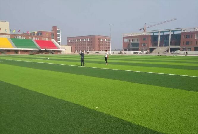 周校長(zhǎng)說(shuō):“人造草坪最大的優(yōu)點(diǎn)就是利用率很高。因?yàn)槲覀儗W(xué)校是足球特色學(xué)校,每天男足、女足都要進(jìn)行常規(guī)訓(xùn)練。如果用的是天然草坪的話,只要下雨就幾乎練不了了,但是人造草坪除非是下暴雨,其他基本不影響訓(xùn)練。”