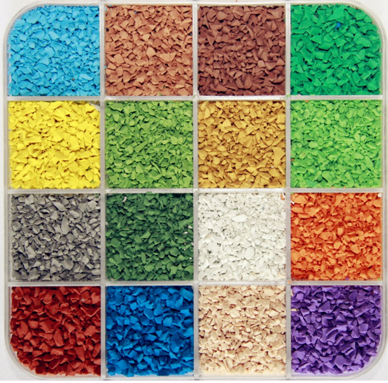 根據(jù)鋪設(shè)面積計(jì)算所需半成品,將所需EPDM顆粒和專用膠水分別放置在操作臺(tái)合適的位置上。每天施工前制作小樣測(cè)試,測(cè)試通過后方可