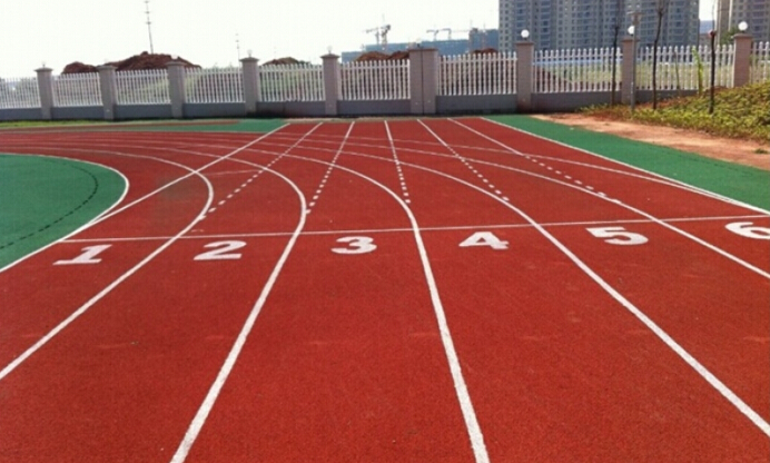 3、面層鋪裝:自結(jié)紋無(wú)顆粒塑膠跑道,施工過(guò)程采用了先進(jìn)的施工工藝,施工順序?yàn)椋旱谝徊剑夯A(chǔ)的檢測(cè)、修整;第二步:鋪設(shè)底膠;第三步:鋪設(shè)清漿層;第四步:鋪設(shè)花漿層;第五步:噴涂場(chǎng)地規(guī)則線。平整度保證達(dá)到95%以上,完全符合國(guó)家和國(guó)際田聯(lián)標(biāo)準(zhǔn)。