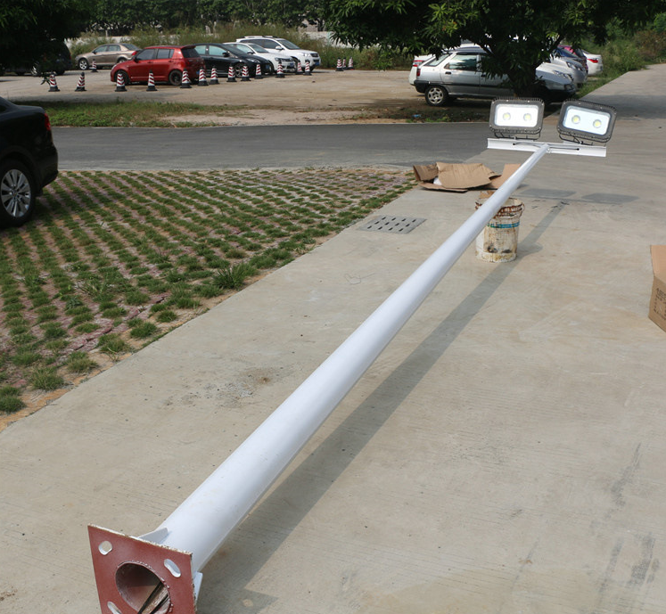 燈桿:低碳鋼管,內(nèi)外熱鍍鋅,內(nèi)層噴涂氟碳漆,表層噴防紫外線白色氟碳漆
